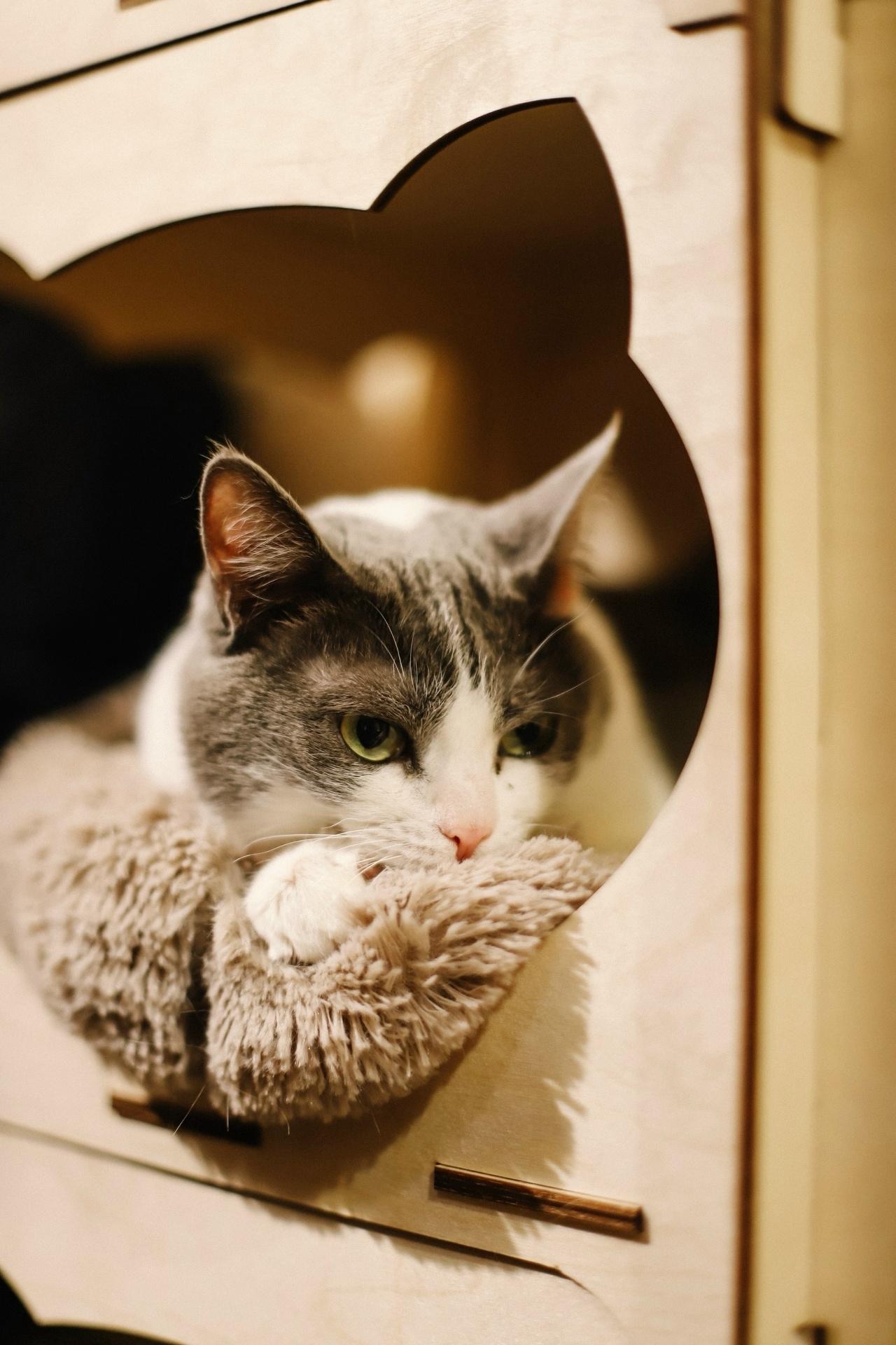 В котокафе Марле трудно из-за постоянного шума, множества людей и других кошек. Ей мечтается о своём человеке, уютном пледе и тишине.