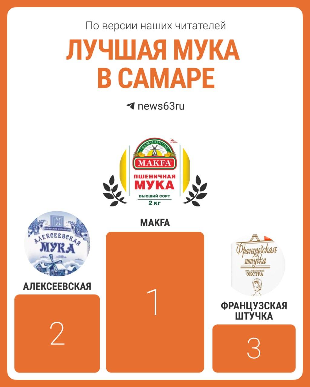 По итогам рейтинга с большим отрывом победила мука «Макфа». Второе место заняла «Алексеевская», а тройку лидеров замкнула «Французская штучка».