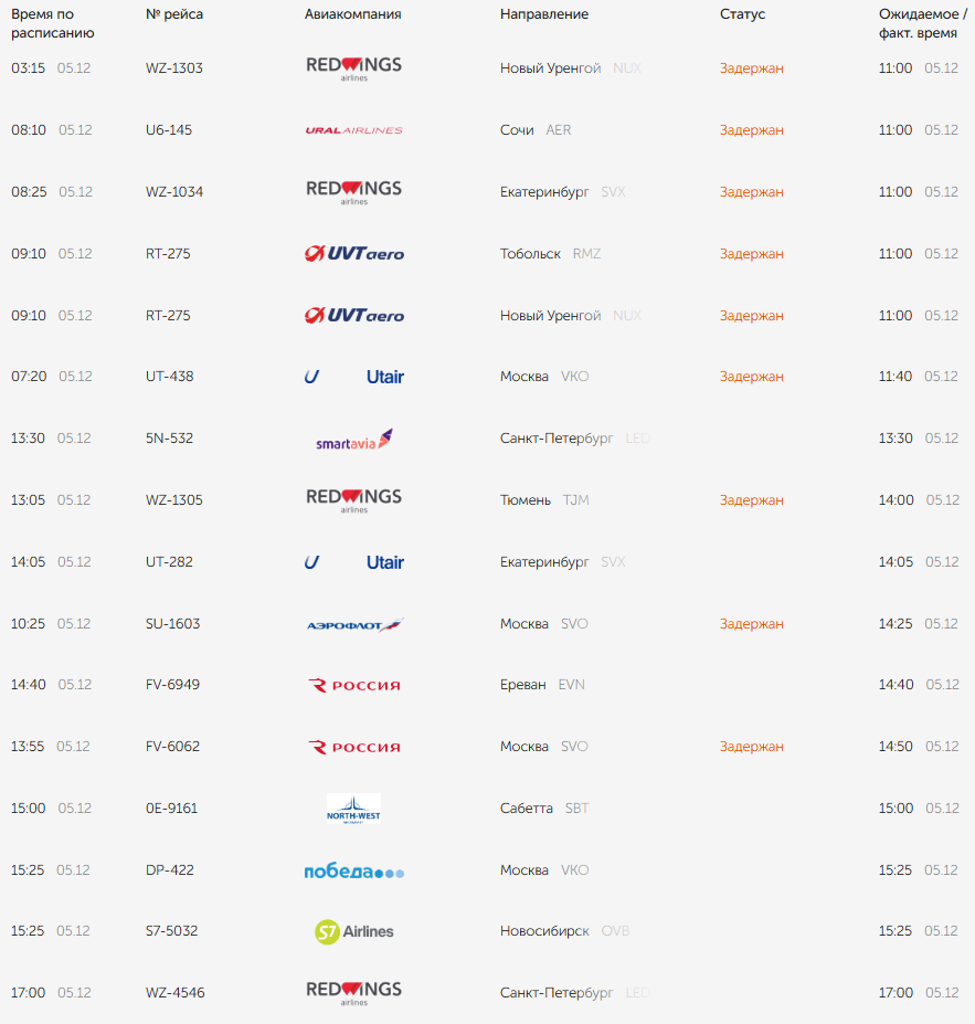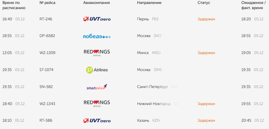 На сайте аэропорта Курумоч опубликована информация о задержке 13 рейсов. В список направлений, откуда не могут вылететь самолёты, вошли Новый Уренгой, Сочи, Екатеринбург, Тобольск, Москва, Тюмень, Минск, Нижний Новгород и Казань.